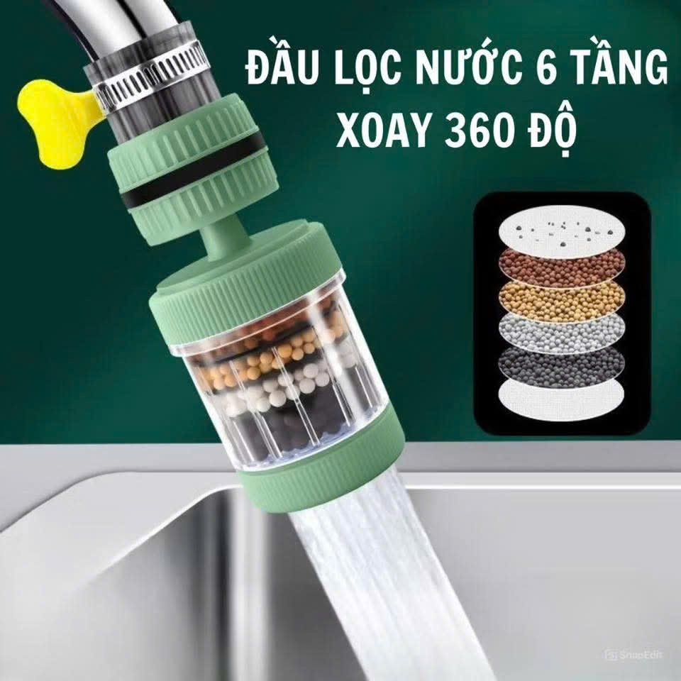 💧✨ Đầu Vòi Lọc Nước Trực Tiếp 6 Lớp Carbon Xoay 360° ✨💧