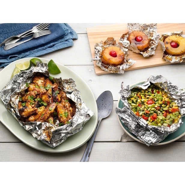 ✌ Giấy bạc bọc thực phẩm nướng & giữ nóng thực phẩm – Cho món ăn thơm ngon, tròn vị Giấy bạc làm từ một loại nhôm cán mỏng, dùng để gói, phủ lên thức ăn khi nấu nướng hoặc để bảo quản. Ngoài ra, giấy bạc còn là vật dụng nhỏ gọn và hữu ích cho các công việc trong gia đình
