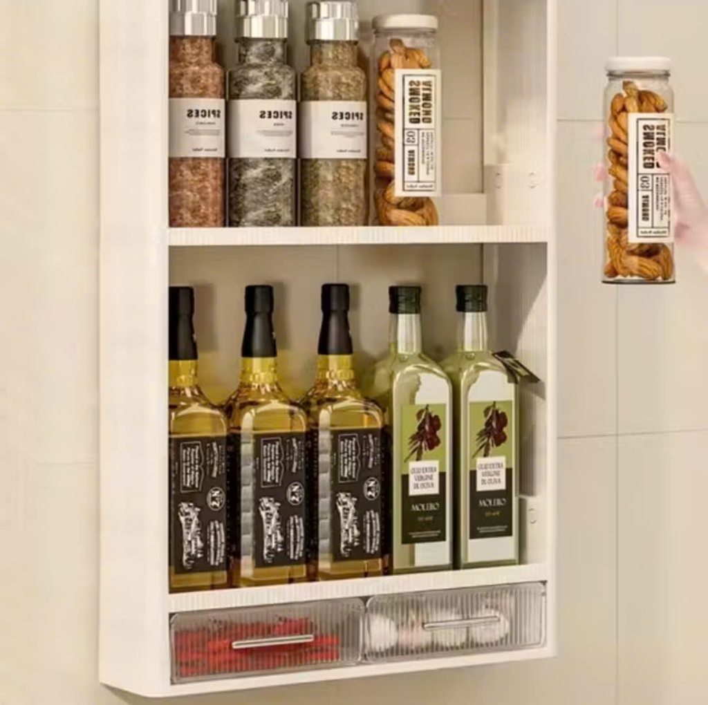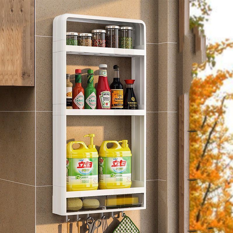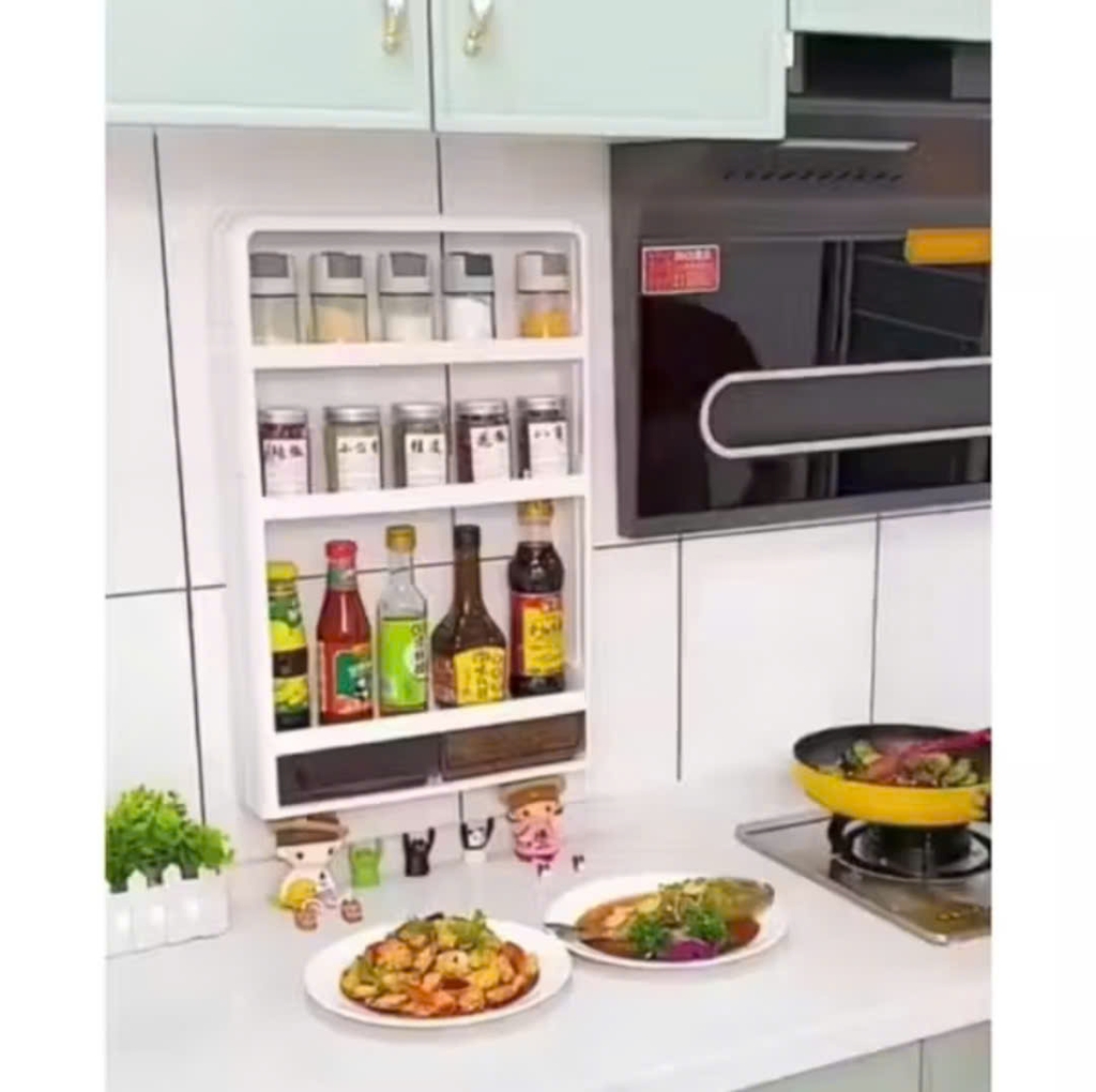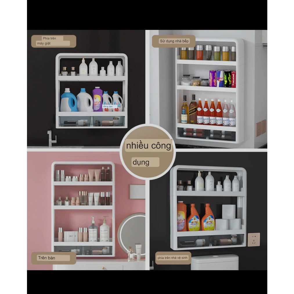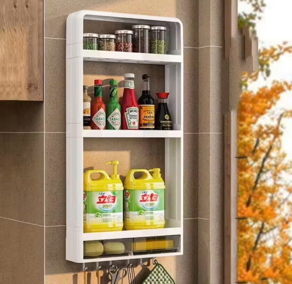 KỆ GIA VỊ TREO TƯỜNG 4 tầng để đồ đa năng có ngăn kéo