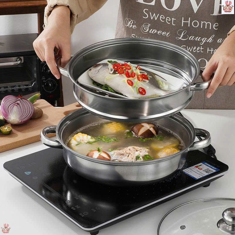 🍀Nồi có kích thước lớn, tầng dưới có thể sử dụng cho việc nấu canh, nấu cháo, kho, xào…